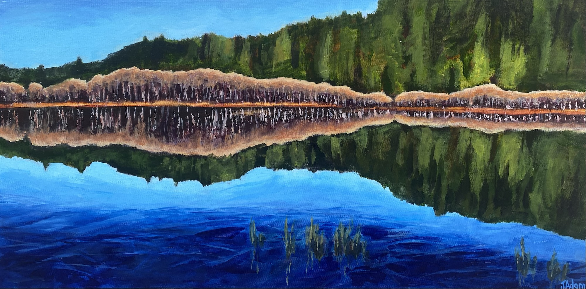 All of my pieces are original acrylic paintings on deep stretched canvas, some have image carried over painted edges, some have solid colour painted edges. I finish each piece with varnish, and wire so it is ready for hanging. I recently added a few smaller paintings on slim canvas in floating frames.